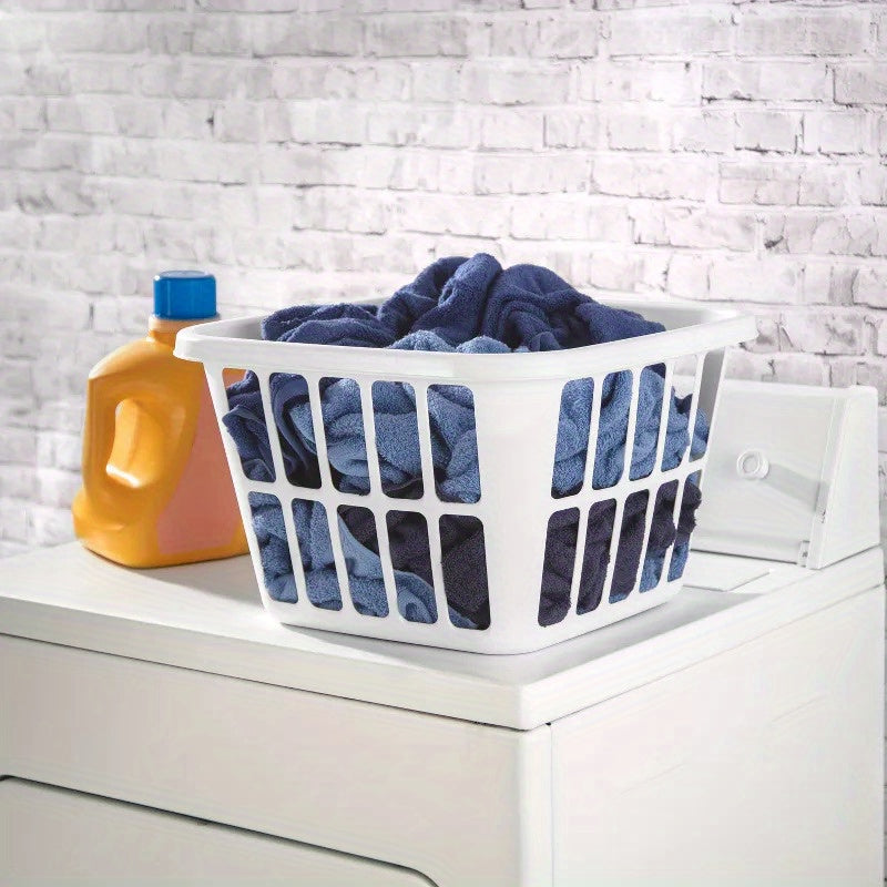 Medium White Plastic Laundry Basket with Built-In Handles â Portable Rectangular Hamper for Clothes Storage, Durable and Easy to Carry, Room Organization | Simple Functionality | Lightweight Construction, Laundry Baskets